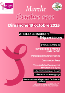 Rejoignez-nous dimanche 19 octobre 2025 pour une marche solidaire dans le cadre d’Octobre Rose, le mois de sensibilisation à la lutte contre le cancer du sein 💗 📍 Lieu :